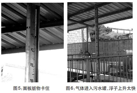 經過兩年多運行,污水罐內可能沉淀污泥雜質導致液位計示數不準。現場拆卸液位計,并且對浮球和磁浮子進行清洗。(圖3-圖4)