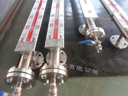 3、磁翻板液位計安裝必須垂直,磁翻板液位計與容器引管間應裝有球閥,便于檢修和清洗;