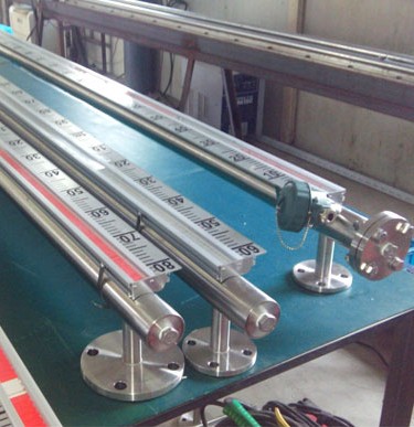 根據(jù)浮力原理,浮子在測量管內(nèi)隨液位的升降而上、下移動(dòng),浮子內(nèi)的永久磁鋼通過耦合作用,驅(qū)動(dòng)紅、白色翻柱翻轉(zhuǎn)180°,液位上升時(shí)翻柱由白色轉(zhuǎn)為紅色,下降時(shí)由紅色轉(zhuǎn)為白色,從而實(shí)現(xiàn)液位指示。