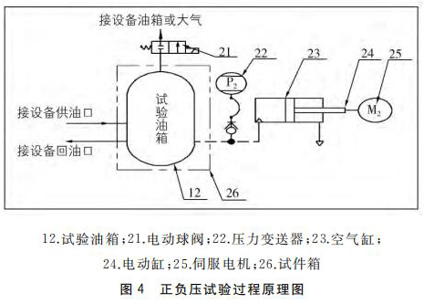 正負(fù)壓試驗(yàn)過程的原理見圖4,正負(fù)壓試驗(yàn)過程主要由電動(dòng)缸帶動(dòng)空氣缸往返運(yùn)動(dòng)來實(shí)現(xiàn)。