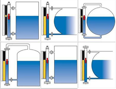 根據(jù)浮力原理,浮子在測量管內隨液位的升降而上、下移動,浮子內的永久磁鋼通過耦合作用,驅動紅、白色翻柱翻轉180°,液位上升時翻柱由白色轉為紅色,下降時由紅色轉為白色,從而實現(xiàn)液位指示。