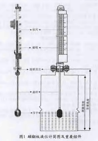 側裝磁翻板液位計是一類專用于指示容器液位的儀器,廣泛應用于各行各業中。塔河油田托甫臺區塊在單井、計轉站的各個環節中均大量應用了磁翻版液位計,通常需要安裝液位計的設備包括水套爐、分離器、儲油罐等。。對于水套爐,液量在總容量的1/3^-1/2為宜,低于這個水位,對原油的加熱效果變差,而高于這個水位,高溫蒸汽超過水套爐的承壓后可能會引發爆炸;對于儲油罐,側裝磁翻板液位計主要起到定量監測油氣產量的作用,液位計讀值的準確性直接影響著錄取生產數據的準確性;此外,對于涉及高壓生產的流程,容器內液位指示是否準確對生產安全與效率具有重大意義。總之,液位計的性能至關重要,若液位指示不準確,很可能導致設備損壞、甚至人員傷亡等安全事故,并嚴重影響油田生產。本文廣泛調研了側裝磁翻板液位計在實際生產中遇到的故障、分析了其形成原因,并據此給出了相應的解決方案,有效提高了液位計的準確度、可靠度,形成了快速排故能力。